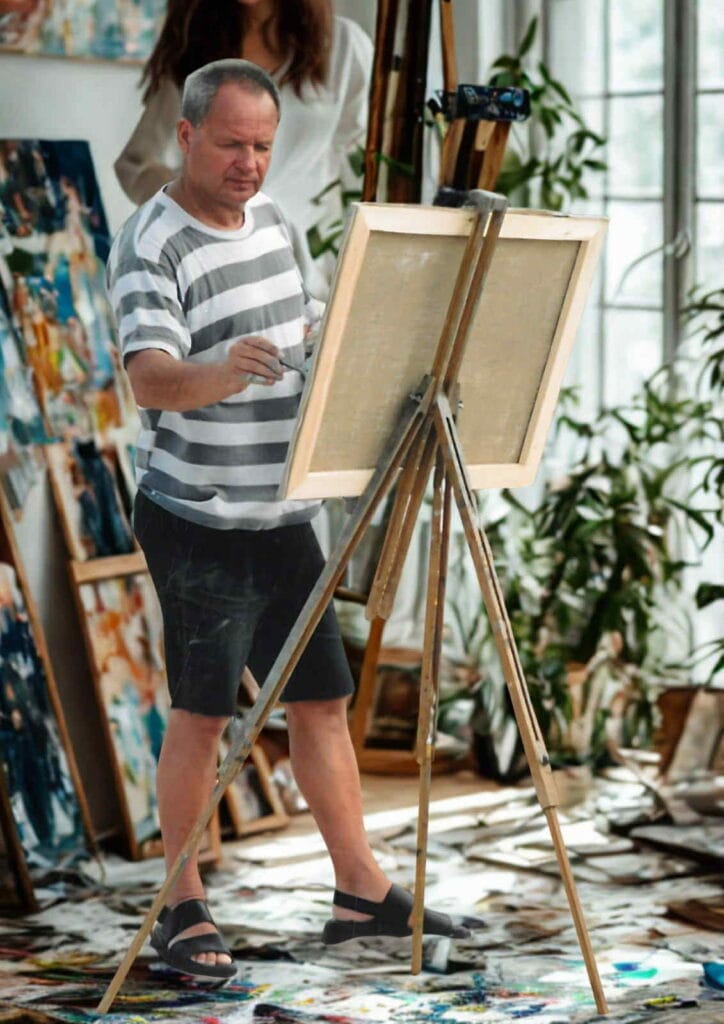 Potem ja z moim mężem Grzegorzem odwiedziliśmy Artystę w jego mieszkaniu przy ul. Grobla, mieszkaniu, które było pracownią i galerią jego obrazów.