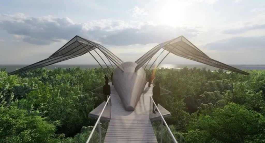 „Wielka Mewa” to spacerowa ścieżka wśród koron drzew. Projekt zakłada powstanie obiektu o wysokości około 37 metrów, który ma zajmować powierzchnię do 2500 metrów kwadratowych. Konstrukcja ma być wykonana ze stali, drewna i szkła, wpisując się w otoczenie parku. Siłą rzeczy pojawiły się pytania o wpływ inwestycji na wody gruntowe i solankowe, a także o sposób finansowania przedsięwzięcia, planowane punkty handlowo-gastronomiczne, parkingi.
