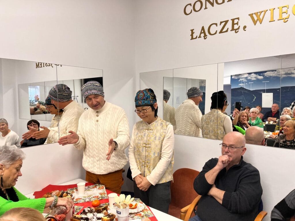 Był też akcent chiński, bowiem gośćmi spotkania byli Pani Mia i Pan Waldemar od kilku miesięcy mieszkający w Cieplicach. Mówili trochę o kulturze chińskiej, medycynie naturalnej, a Pani Mia poczęstowała zebranych specjalnymi ciasteczkami ryżowymi zapowiadając ciekawe spotkania przy prawdziwej chińskiej herbacie.
