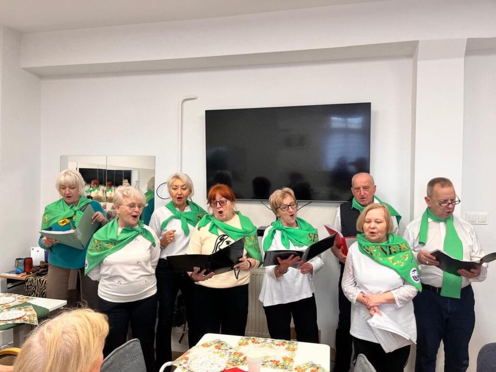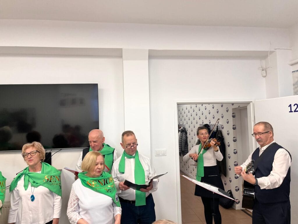 Na miły początek wystąpił zespół wokalno — muzyczny Senioralsi działający przy KSON-ie tym razem z niecodziennym repertuarem. Oryginalna wersja „Szła dzieweczka do laseczka” rozbawiła licznie zgromadzonych uczestników spotkania! Następnie wystąpiła Magdalena Pełech – instruktorka tańca afrykańskiego, animatorka kultury i miłośniczka zdrowego trybu życia, która co tydzień w KSON-ie prowadzi zajęcia dla seniorów „Pośpiewanki” i „Rozruch Seniora”. Pani Magda zaśpiewała i zagrała dla seniorów łącząc afrykańskie brzmienie z polskim tekstem – czego efektem była pieśń dziękczynna dla babć i dziadków.