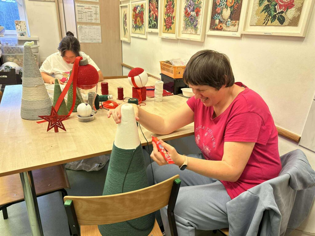 Swoje talenty podopieczni placówki pokazują także przygotowując niezwykłe ozdoby świąteczne, z czego też jest dochód. Ich zwieńczeniem będzie bożonarodzeniowy kiermasz. W PSONI trwają właśnie gorączkowe przygotowania do kiermaszu (na zdjęciu). Już 8 grudnia w siedzibie PSONI na ulicy Mazowieckiej w Kołobrzegu pojawią się wyjątkowe rękodzieła, ale już można poczuć świąteczną atmosferę. To szczególne wydarzenie, na które od lat czekają mieszkańcy Kołobrzegu – nie tylko ze względu na możliwość zakupu wyjątkowych ozdób, ale także na szansę wsparcia podopiecznych i działalności stowarzyszenia.