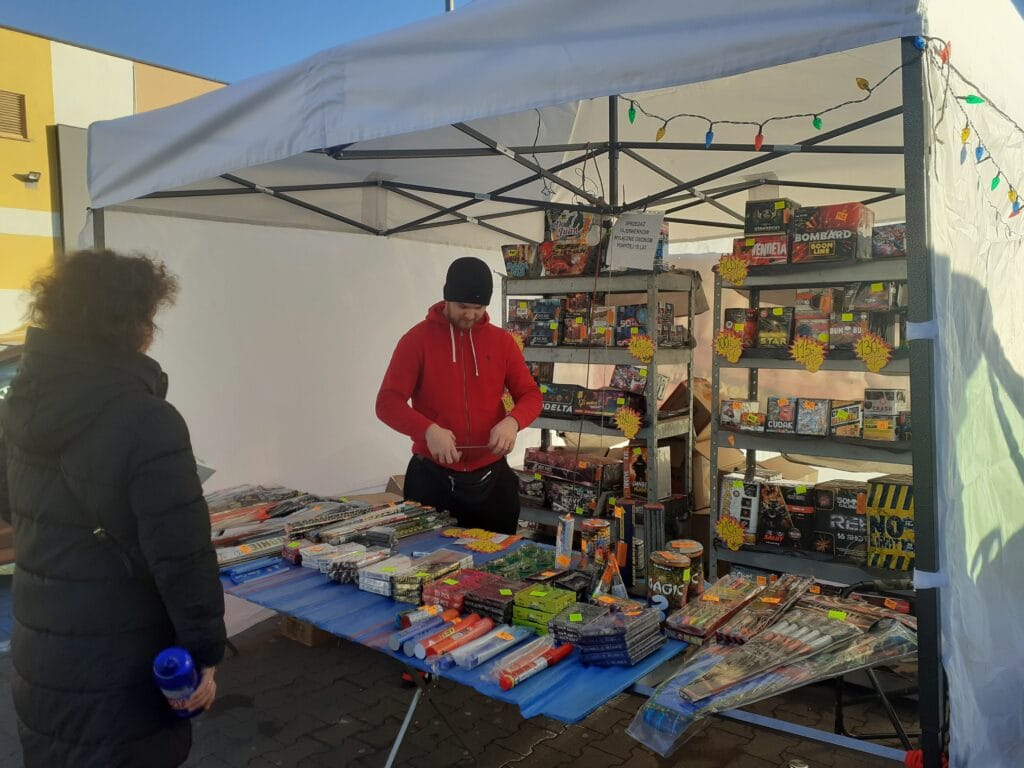 Fajerwerki mogą być sprzedawane wyłącznie osobom pełnoletnim (na zdjęciu – stoisko z fajerwerkami przed jednym z kołobrzeskich marketów). Złamanie tego przepisu grozi karą grzywny, ograniczenia wolności lub nawet pozbawienia wolności do 2 lat.
