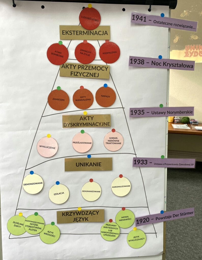 Jednym z kluczowych elementów spotkania było omówienie „piramidy nienawiści” autorstwa amerykańskiego psychologa Gordona Allporta, profesora Uniwersytetu Harvarda. Badacz zauważył, że przemoc i zbrodnie przeciwko ludzkości – jak Holocaust – nigdy nie pojawiają się nagle. Poprzedza je zawsze proces narastania uprzedzeń i mowy nienawiści.