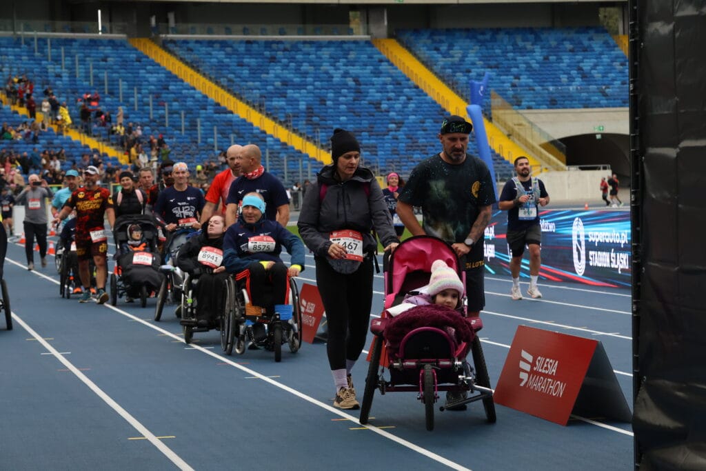 Organizatorzy Silesia Maratonu od samego początku wspierają tą akcję, otwierając przestrzeń dla osób z ograniczeniami fizycznymi i pokazując, że sport to nie tylko wyniki, ale przede wszystkim radość, integracja, świetna zabawa i współpraca. Grupa siedemnastu wózkowiczów biegła w jednakowym tempie, co pozwoliło na wspólne ukończenie trasy i zapewnienie bezpieczeństwa wszystkim uczestnikom. Zawodnicy pokonali dystans 21 kilometrów i przy oklaskach publiczności przekroczyli linię mety na bieżni legendarnego „Kotła Czarownic” czyli Stadionu Śląskiego w Chorzowie, co dla każdego zawodnika jest sporym przeżyciem. Każdy uczestnik Silesia Półmaratonu po minięciu linii mety otrzymał na bieżni Superauto.pl Stadionu Śląskiego pamiątkowy medal.