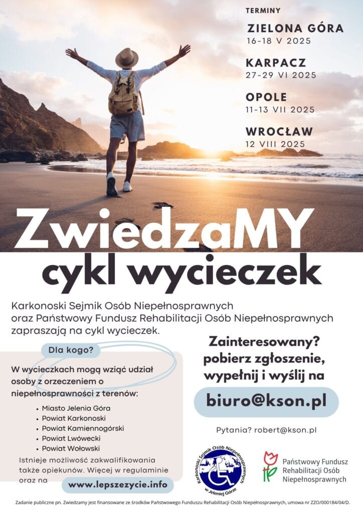Karkonoski Sejmik Osób Niepełnosprawnych wraz z Państwowym Funduszem Rehabilitacji Osób Niepełnosprawnych zapraszają na cykl wycieczek w ramach projektu ZwiedzaMY.