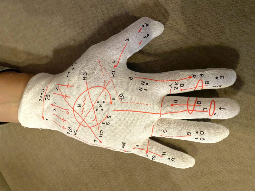 - Daktylografia (odtwarzanie kształtów liter palcami na dłoni)